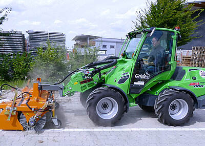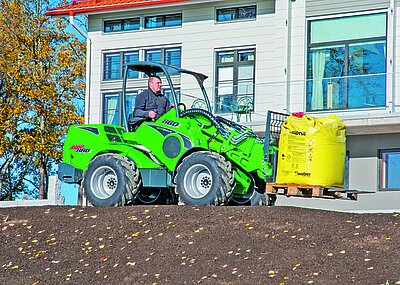 Über 200 Anbaugeräte bietet Avant seinen Kunden. Auch hier gibt es Neuheiten. Für den mechanischen Seitenhubarm S-30 steht nun eine verbesserte Heckenschere zur Verfügung, mit der man weitreichender schneiden kann. Ein neuer Auslegearm mit Rotation, der sehr gut geeignet ist für den Einsatz der Pflasterverlegezange, wurde ebenfalls vorgestellt. Darüber hinaus gibt es neue Greifer für die Baumpflege und für diesen Arbeitsbereich ist nun auch ein neuer Holzhäcksler im Geräteprogramm. Dass für den Avant-Schnellwechsler auch Adapter für Euro- und Kompaktaufnahme serienmäßig lieferbar sind, sollte der Vollständigkeit halber erwähnt werden. Insgesamt ist das Avant-Programm in Umfang und Tiefe erweitert worden und macht es damit den Anwendern noch besser möglich, effektiver zu arbeiten.