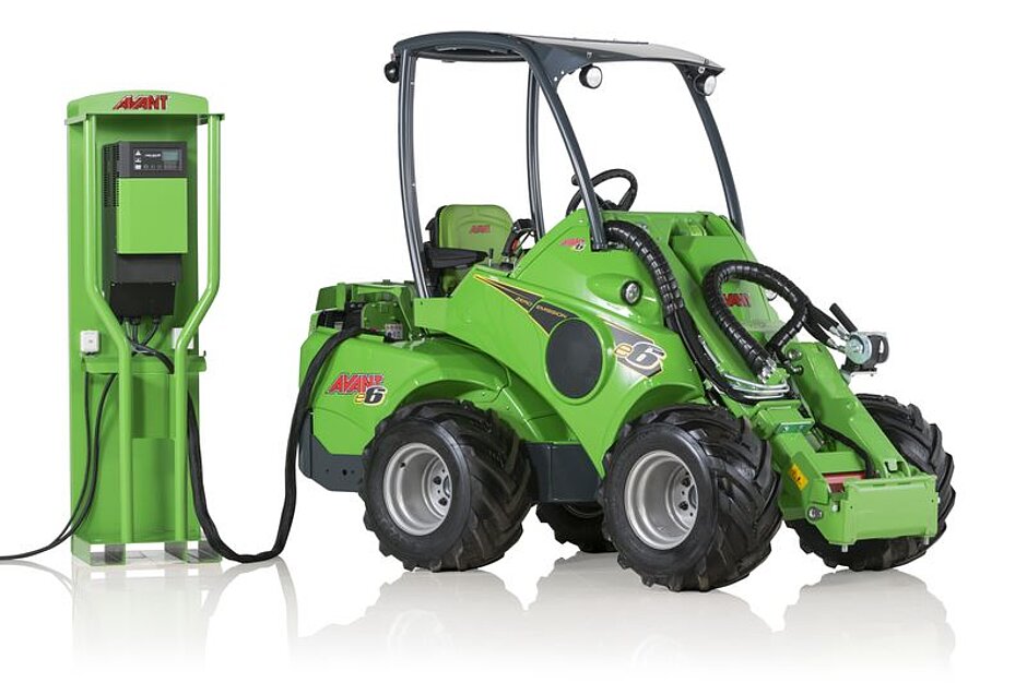 Der neue Avant e6 gilt als der erste serienmäßige, rein elektrisch betriebene Multifunktionslader mit Lithium-Ionen-Technologie. Premiere feierte er im letzten November auf der Agritechnica. Die Umwelt und den Fahrer belastende Dieselabgase gehören bereits seit letztem Jahr mit der Markteinführung des e5 der Vergangenheit an. Während der erste rein elektrische Lader aus dem Hause Avant seine Kraft aus einer Blei-Säure-Batterie speiste, bedient sich der e6 eines vergleichsweise deutlich leichteren Li-Ionen-Aggregats mit 14,5 kWh. »Diese Technologie bietet dem Anwender die Möglichkeit, den Akku mittels eines Schnellladegeräts innerhalb einer Stunde, zum Beispiel während der Mittagspause, vollständig aufzuladen und mit der Maschine bis zu sechs Stunden zu arbeiten«, erläutert Thomas Sterkel als Avant-Deutschland-Geschäftsführer den »Boxenstopp«.