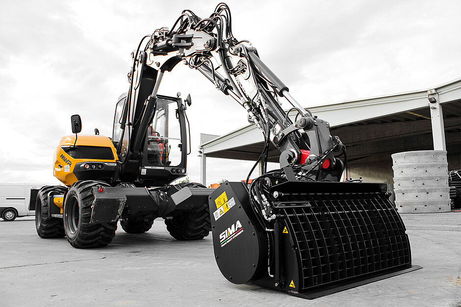 Die Lager als Verbindung zwischen Mischwelle und Schaufelkörper sind hohen Anforderungen an Stabilität und Dichtigkeit ausgesetzt. Sima setzt bei der Mischschaufel auf belastbare Rollenlager, die 4-fach gedichtet und wartbar sind. Flexibilität beim Träger und Ausstattung Die Sima Mischschaufel gibt es in 14 Baugrößen von 100 l Inhalt für Bagger ab 2,5 t oder kleine Lader bis 2 m³ für Großmaschinen.