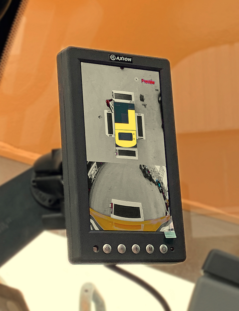 Das Axion-System ist für den Einsatz in großen Fahrzeugen konzipiert und lässt sich dort auch per Plug & Play nachrüsten. Nach der individuellen Kalibrierung für das jeweilige Fahrzeug liefert das System per HD-Auflösung scharfe und kontrastreiche Bilddarstellungen. Daneben will die 360°-Lösung mit einer einfachen Bedienung überzeugen. Der Monitor ist vertikal ausgerichtet und im Bereich der A-Säule montiert. Dank moderner Kameratechnik ist laut Axion auch bei Dunkelheit für eine gute Übersicht gesorgt.