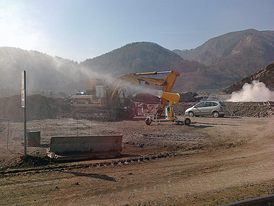 Beim Gebäudeabbruch, in Steinbrüchen und in Recycling-Betrieben sind bedingt durch schwierige Platzverhältnisse häufig große Weiten zwischen der Staubquelle und dem nächstmöglichen Aufstellpunkt für eine Sprühanlage zu überwinden. Diesem Problem will B+W mit einer Sprühkanone entgegenwirken. Diese nutzt die Ventilatorluftströmung, um den Wassernebel über große Weiten zu werfen. Je nach Leistungsstärke der Ventilatoren und der Wassermenge sind laut Anbieter Wurfweiten bis zu 100 m möglich. Der Aufbau der Anlagen ist bewusst einfach gehalten, um den rauen Einsatzbedingungen zu entsprechen. Der Ventilator mit den Nebeldüsen ist an einem robusten Stahlbau montiert, die Druckerhöhungspumpe mit Wasserfilter und Magnetventil sowie die Elektrik sind ebenso geschützt daran befestigt.