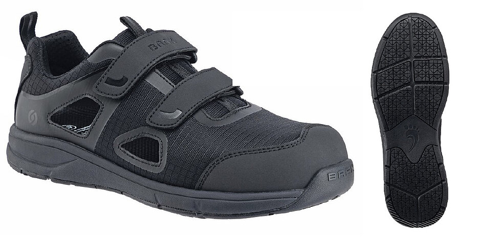 Das System ist patentiert und mehrfach ausgezeichnet. Es soll einen ermüdungsarmen Gang über den ganzen Arbeitstag hinweg ermöglichen. Zusätzlichen Tragekomfort bieten außerdem die »Baak ESD Softstop+«-Einlegesohlen sowie ein natürliches Textilfutter, das die Sandale zusätzlich luftig und atmungsaktiv macht. Praktische Doppel-Klettverschlüsse ermöglichen schnelles An- und Ausziehen. »Sun« ist komplett metallfrei und besteht aus abriebfestem Nylonmaterial. Darüber hinaus ist die Sandale für orthopädische Einlagen nach DGUV 112-191 zertifiziert.