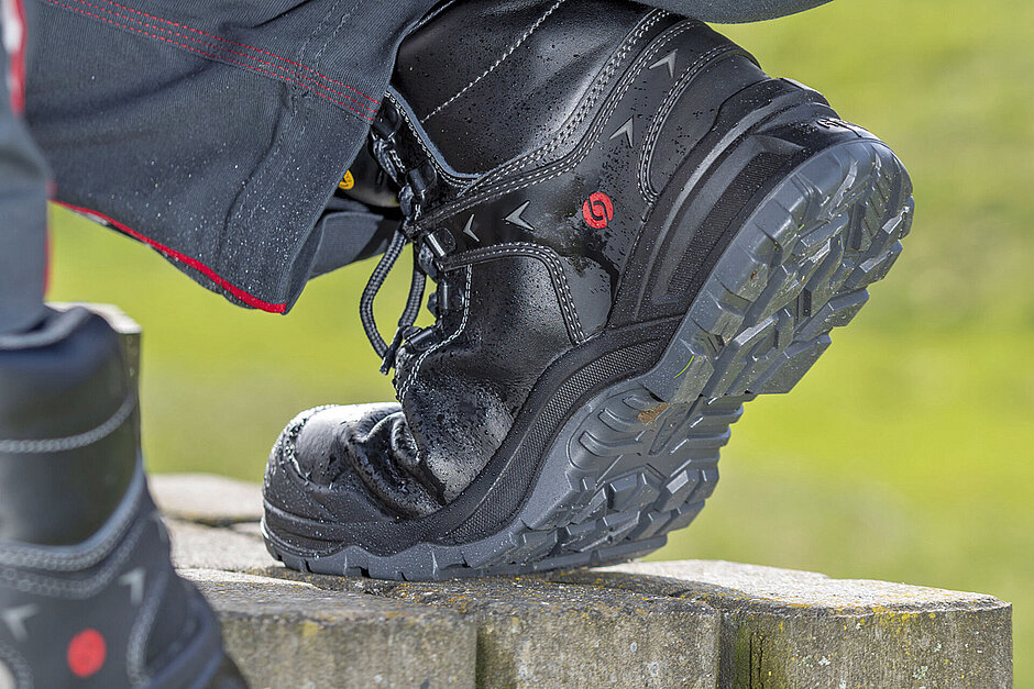 Beide Schuhe tragen entsprechend der neuen Normen die Bezeichnung „S3S FO LG SR ESD“. Das heißt, sie sind antistatisch, dank einer textilen Zwischensohle durchtritthemmend und verfügen über die ESD-Eignung. Die Sohlen sind kraftstoffbeständig und auf dem höchstmöglichen Level rutschhemmend. Die Absätze geben zudem auf Leitern Trittsicherheit.