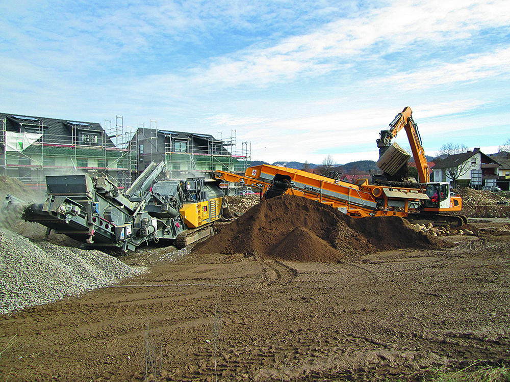 Gereinigte Steine werden vom Sternsieb 2-ta direkt in einen Prallbrecher übergeben und dort gebrochen. So lässt sich mit hoher Leistung in einem Arbeitsgang besonders sauberes Material erzeugen, das auch als Frostschicht genutzt werden kann. Der gesiebte Boden lässt sich als Füllmaterial einsetzen.