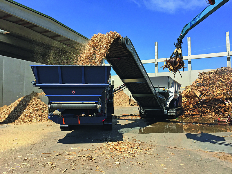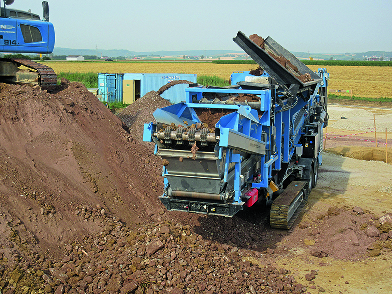 Schwere und sehr starke, langsam laufende Walzenbrecher zerkleinern beispielsweise Altholz. Dieser Vorgang ist relativ staubarm bei, so Backers, geringem Kraftstoffverbrauch und Verschleiß. Wie die Entwickler aus Twist betonen, stellen Türschlösser, Scharniere oder auch Fahrräder für die schweren Brecher kein Problem dar. Metall kann direkt separiert werden. Diese Brecher können das Altholz allerdings nicht in einem Arbeitsgang auf die gewünschte Länge reduzieren. Daher wird mit dem Sternsieb gesiebt und die längeren Teile werden zurück in den Brecher gefördert.