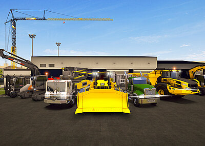 - Caterpillar: 430F2 Baggerlader, 349F Hydraulikbagger, M318F Mobilbagger, AP1055F Schwarzdeckenfertiger, 140M3 Motor Grader, CS56B Walzenzug, PM620 Asphaltfräse, 950M Radlader, CB44B Tandemvibrationswalze, D8T Kettendozer, 745C knickgelenkter Muldenkipper