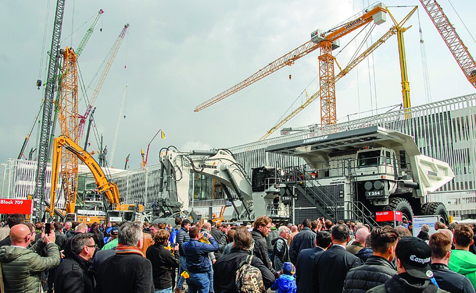 Über 3 500 Aussteller aus 55 Ländern präsentieren sich – fast 100 mehr als noch 2016. Mit »Bauma Plus« können nun noch mehr Unternehmen ausstellen, Virtual Reality bringt die Baustelle in die Messehalle. Auch die 600 000er-Besuchermarke soll mit der Messeausgabe 2019 geknackt werden.