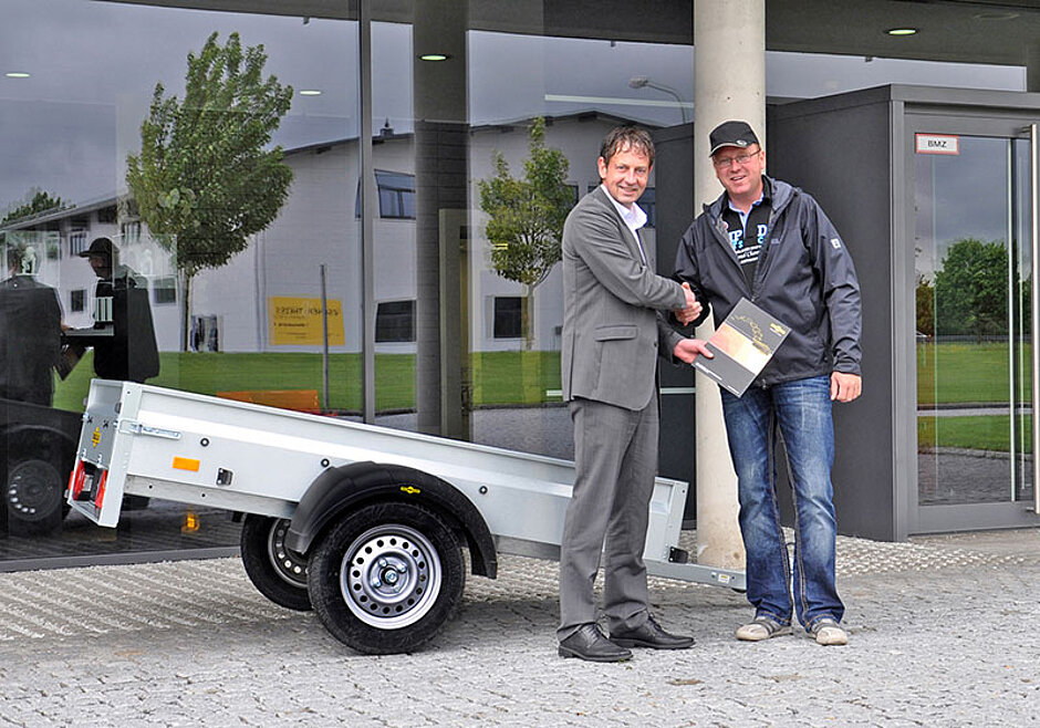 Der 44-jährige Baggerfahrer, der übrigens zum ersten Mal auf der weltweit größten Baumesse war, konnte sein Glück gar nicht fassen. Walter war mit seinem Arbeitgeber, dem traditionsreichen Bauunternehmen Carl Heuchel aus Nördlingen, im Rahmen eines Betriebsausflugs in München auf der bauma und interessierte sich für die Vielzahl an Humbaur Anhängern. Seine Erfahrung mit Baumaschinen machte sich bezahlt. Exakt 347 Schrauben sind in einem Humbaur 40 t Tieflader mit verbaut. Diese verhältnismäßig geringe Anzahl begründet sich in dem komplett geschweißten Fahrgestellrahmen. Freuen kann sich der Gewinner nun über einen fabrikneuen Einachs-Stahlblechanhänger "Steely", der im Landkreis Teltow-Fläming als Gemeinschaftsanhänger seinen Zweck erfüllen wird.