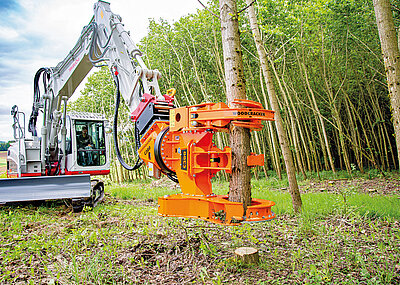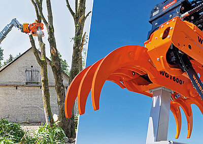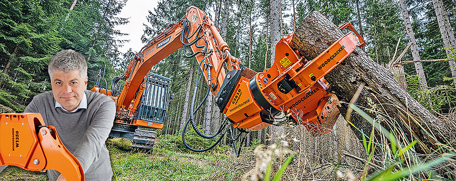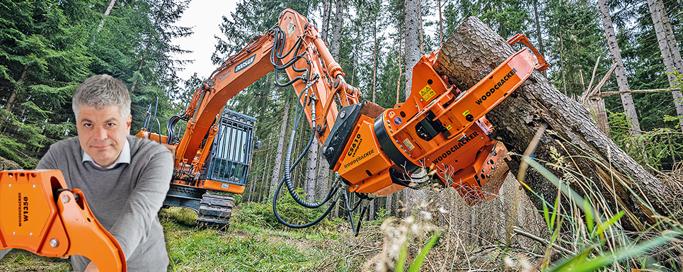 bauMAGAZIN: Seitdem sind mehr als 17 Jahre vergangen. Ausgelegt war das erste offizielle Modell des Woodcrackers auf Bagger der 10-t-Klasse. Wie verhält es sich mit der Holzspaltzange heute?