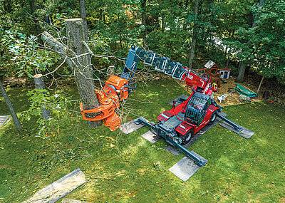 bauMAGAZIN: Eine weitere Neuheit ist allerdings auch der sogenannte Fellertruck, ein mobiler Fällkran, der auf einem Lkw montiert wurde. Wie genau kam es zu dieser Neuentwicklung?