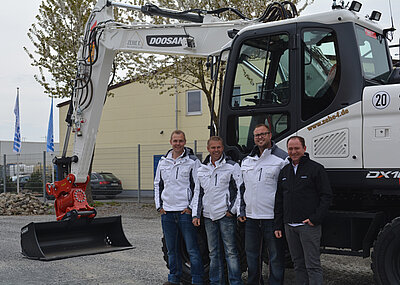 Viele Kraemer-Kunden hätten den langen Weg zur Bauma nach München gescheut, berichtet Kraemer-Verkaufsleiter Max Gutmann. »Um trotzdem dafür zu sorgen, dass unsere Kunden nicht komplett auf ein ›Bauma-Feeling‹ verzichten müssen, haben wir hier für eine weiß-blaue Kulisse für die neuesten Trends unserer Premiumhersteller Terex, Doosan und Yanmar gesorgt und konnten in den fünf Tagen dem Fachpublikum wegweisende Innovationen vorführen.« Als Aussteller auf der Bauma habe man schließlich selbst schnell gemerkt, welche Themen Kunden wirklich wichtig seien. »Und so haben wir hier ein dementsprechendes Gelände vorbereitet«, betont der Verkaufsleiter.