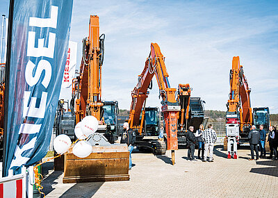 An den Standorten Stralsund und Rostock ist derzeit ein rund 60 Hitachi-Maschinen umfassender Maschinenpark vorhanden, der künftig bedarfsgerecht weiter ausgebaut werden soll. Die in Kiesel-Bauma-Rent GmbH umbenannte Firma hat sich bereits in der Vergangenheit einen Namen mit der Verleihung von Baumaschinen mit Geräteführer gemacht. Somit können künftig auch Kunden aus dem Norden Deutschlands im gleichen Maße auf die Dienstleistungen des Kiesel-Mietparks zurückgreifen.