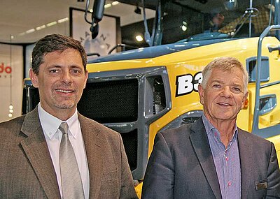 Ungeachtet seiner »4x4-Offensive« bleibt Bell Equipment mit insgesamt sieben 6x6-Knicklenkern von 18 t bis 45,4 t Nutzlast der Anbieter mit dem größten Muldenkipper-Programm. Aus seiner »großen« Baureihe zeigt der Hersteller in Paris den B40E (NL: 39 t; 24 m³). 380-kW-Mercedes-Motor und 7-Gang-Allison-Automatik versprechen überlegene Verbrauchswerte des Vierzigtonners, der wie alle Bell-Muldenkipper eine umfangreiche Serienausstattung an produktivitätssteigernden Fahr- und Lade-Assistenten sowie wartungsfreundlichen Steuerungs-Features mitbringt. Dazu zählt auch die individuelle Einbindung des Fahrzeugs in das satellitengestützte Flottenmanagement Fleetmatic. Das System unterstützt Betreiber mit detaillierten Informationen in Echtzeit bei der Optimierung ihrer Produktion, der Verfügbarkeit und des nachhaltigen Werterhalts ihrer Maschineninvestitionen. §