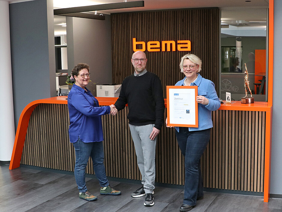Was vor 84 Jahren als einfache Schmiede begann und als Landmaschinenwerkstatt bis in die neunziger Jahre weitergeführt wurde, ist heute eine zukunftsfähige Maschinenfabrik mit weltweiten Vertriebspartnern und einer umfangreichen Produktpalette. Dieser Wandel erforderte geordnete Produktions- und Unternehmensprozesse sowie die Einführung eines Qualitätsmanagementsystems (QMS). Bereits 1999 erhielt Bema das erste DIN EN ISO 9001 Zertifikat – als erster Hersteller von Anbaukehrmaschinen. Und auch noch heute, 25 Jahre später, werden alle Betriebs- und Prozessabläufe nach dieser international anerkannten Norm umgesetzt und geprüft. Das sorgt dafür, dass sich das Unternehmen kontinuierlich weiterentwickeln kann. Von Beginn an bis zu seinem Ruhestand stand Dr. Hermann Saalfeld dem Bema-Team um Marc Kemmer als Qualitätsmanagement-Beauftragten und Geschäftsführerin Sonja Koopmann zur Seite – erst als Berater beim Aufbau des Qualitätsmanagements und später als Auditor für die jährlichen Audits sowie für die alle drei Jahre stattfindenden Rezertifizierungen. Als unabhängige Auditorin fungiert seit 2022 Petra Wagner, die ISOfee aus Melle. Außerdem erhielt das Unternehmen zum zwölften Mal in Folge das Crefo-Bonitätszertifikat und unterstreicht damit nachhaltig die Zuverlässigkeit des Familienunternehmens.s