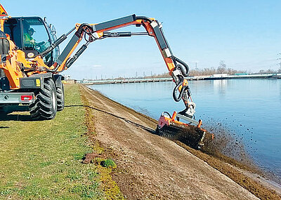 Als Highlight gilt die hydraulische Seitenverschiebung für die Bema 35 Dual, Bema 30 Dual oder Bema 3 Robust. Durch die Verschiebung der gesamten Kehrmaschine um 50 cm – links wie auch nach rechts – können Trägerfahrzeug und Kehrmaschine auf unterschiedlichen Fahrspuren arbeiten. §