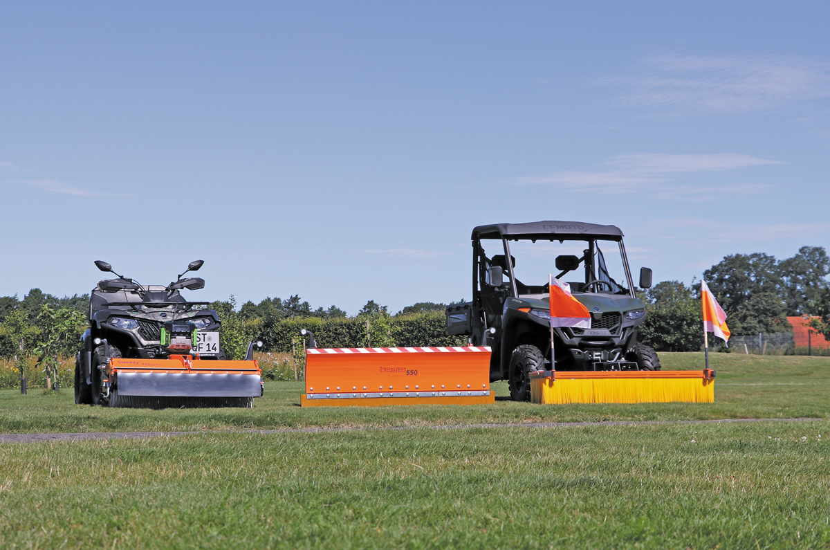Die Konstrukteure von Bema haben eine einheitliche Schnittstelle für den Anbau von Kehrmaschine, Schneeschild und Schiebebesen entwickelt. Diese innovative Spezialkonstruktion ermöglicht einen schnellen Wechsel der Anbaugeräte über eine praktische Dreipunktaufnahme. So werden die Effizienz und Flexibilität im Einsatz gesteigert, ohne Kompromisse bei Stabilität und Sicherheit einzugehen. Der Aushub erfolgt bequem über die fahrzeugseitige Seilwinde. Die neuen »QuadLine«-Anbaugeräte werden ab diesem Jahr über den Fachhandel erhältlich sein. s