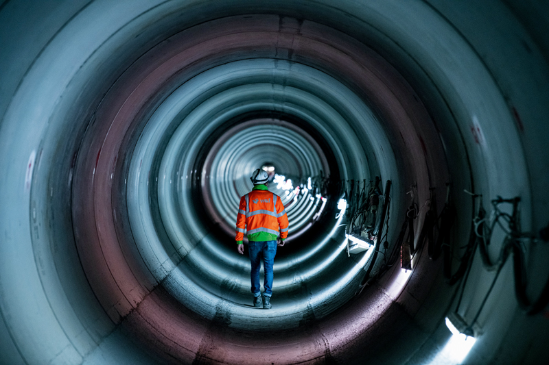 Start für die erste Haltung des Rohrvortriebs DN 3000 mit einer Länge von 985 m war im Mai 2019. In einer Tiefe von 6 m bis 9 m wurden bis August 330 Vortriebsrohre eingebaut. Nach Erreichen der Vortriebsmaschine am Zielschacht, wo der Anschluss an einen bestehenden Kanal erfolgt, konnte die zweite Vortriebsstrecke in Angriff genommen werden. Dafür wurde die Vortriebsmaschine zurück zur Startgrube gebracht, umgesetzt, um diesmal in Richtung Westen die zweite Kanaltrasse im Vortriebsverfahren mit einer Länge von 1 210 m zu erstellen. Fristgerecht hatte Berding Beton bis Herbst alle Vortriebsrohre produziert, sodass von September bis Ende Dezember 2019 mithilfe der Presseinrichtung weitere 405 Vortriebsrohre in den Baugrund getrieben werden konnten.