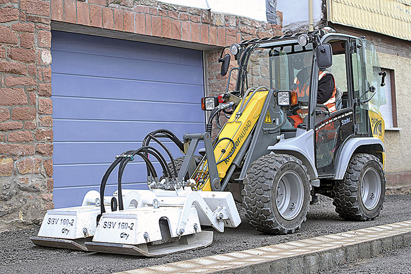 Mit dem Stehr-Hochfrequenz-City-Plattenverdichter des Typs SBV 160-HF mit gerichteten Schwingungen, angebaut an einen Kramer-350-Lader mit Hochleistungshydraulik, reichte bereits eine Überfahrt, um die vorgegebenen Werte zu erreichen. Nach Stehr-Angaben sei weltweit kein weiteres Verdichtungsgerät erhältlich, das mit den geringen Abmaßen von nur 140 cm Breite und einer Zentrifugalkraft von 160 kN diese Leistung erreiche.»Wenn andere mit ihrem Latein am Ende sind…«