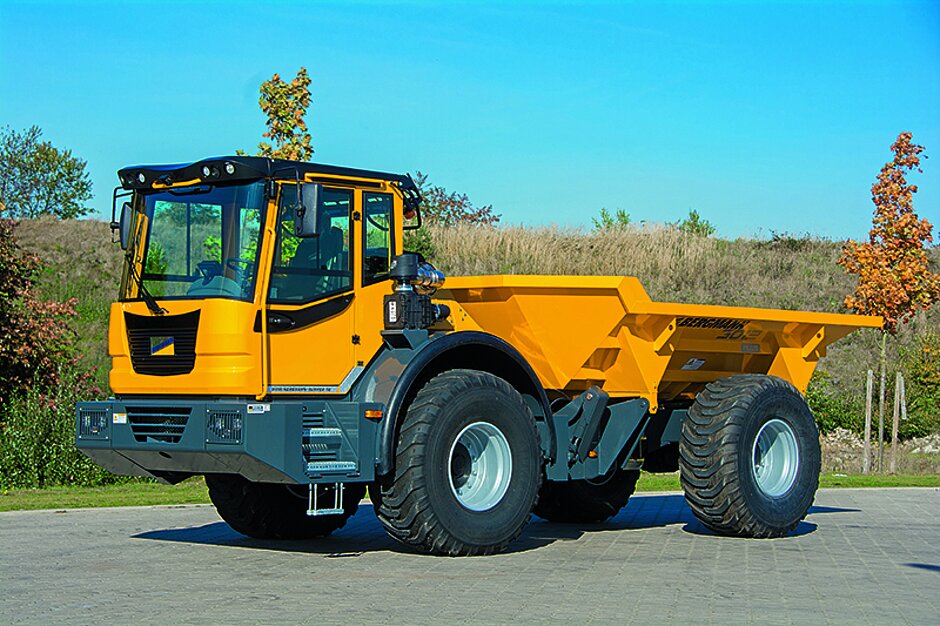 Ebenfalls im Einsatz zeigt Bergmann eine Weiterentwicklung seines Knicklenkers mit 12 t Nutzlast. In der Gesamtheit seiner Optionen hat der Hersteller mit dem 3012 ein Baustellenfahrzeug geschaffen, das im Wettbewerb seinesgleichen suchen soll. Besonders der drehbare Fahrerstand – als Markenzeichen von Bergmann seit 50 Jahren – steht im Mittelpunkt auf der Musterbaustelle »Straßenbau« der Tiefbau Live. Hier zeigt Bergmann den 3012 erstmals in Kombination mit einer neuen Fahrerkabine. Sie wurde auf Sicherheit und Übersichtlichkeit optimiert und will dem Bediener noch besser erlauben, mit der Nutzung des Wendesitzes die Möglichkeiten des Bergmann 3012 optimal auszunutzen. In Verbindung mit der gezeigten Muldenkonfiguration als Dreiseitenkipper lässt sich der Knicklenker ohne umständliche Wendemanöver in Sichtrichtung des Fahrers bewegen. Ein weiteres Details stellt die Haubenkonstruktion zum optimalen sicheren Wartungszugang des Antriebs dar. Die optionale Straßenzulassung, großdimensionierte Bereifung sowie Allradantrieb mit Fahrgeschwindigkeiten bis 45 km/h sollen die Einsatzreichweite multiplizieren und den Bergmann 3012 zum geländegängigen Universalkipper auch für Großbaustellen machen.