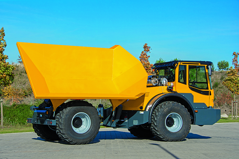 Mit dem raupengestützten Dumper 4010R verfügt der Hersteller über ein Fahrzeug für extremes Gelände. Um dem Bediener hier eine effiziente Nutzung des Wendesitzes in der Praxis zu ermöglichen, statten die Spezialisten aus Meppen den 4010 mit einer Logic-Steuerung aus. Dabei erkennt eine Sensorik die Fahrtrichtung und schaltet selbstständig die Lenkrichtung um. Für den Raupendumper 4010 wurde zu dem eine serienmäßige Steuerung mittels Lenkrad entwickelt, die flüssige Kurvenfahrten ermöglicht. Für zusätzliche Flexibilität im Arbeitsalltag sorgen um 180° stufenlos schwenkbare Mulden, der bei Bergmann sogenannten Rundkipperausführungen, mit denen ausgestellten Dumper des Unternehmens ausgestattet sein werden. Auch die ebenfalls ausgestellten kleinen Elektrodumper 1005E sollen die Facetten der Kernkompetenz im Dumperbau zeigen. t