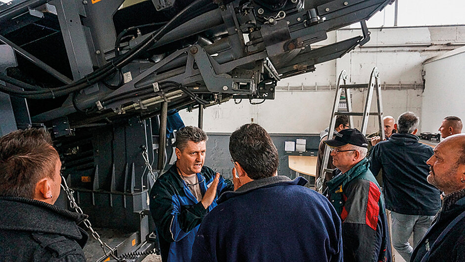 Nach einer von Werwie-Niederlassungsleiter Thorsten Huber moderierten Begrüßungsrunde erläuterten Vögele-Service-Gebietsleiter den Stand der Technik. Im Anschluss übernahm Werwie-Mietparkleiter Matthias Beckmann den Part »Reinigung und Pflege«, bevor der praktische Seminarteil an den Vögele MT 3000-2 erfolgte. Hier erklärten Werwie-Servicetechniker den richtigen Umgang mit der Maschine. »Die Insider-Tipps, die wir heute erhalten haben, sind sehr wertvoll für uns«, lobt Torsten Michel von der Firma Bickhardt Bau. »Zwar haben wir mit dem Einsatz von Beschickern schon etwas Erfahrung, aber nach dem Tag heute fühlen wir uns deutlich besser informiert. Der nächste Baustelleneinsatz mit Beschicker kann kommen!« Auch Mietparkleiter Beckmann zeigte sich zufrieden mit der Resonanz auf die beiden Praxistage: »Mit den Beschickern von Werwie wurden im letzten Jahr an die tausend Kilometer Straße gebaut. Die Einsätze mit Beschickern haben insgesamt deutlich zugenommen. Ich freue mich, dass wir unsere praktischen Erfahrungen an unsere Kunden weitergeben können.« Für das kommende Jahr seien weitere Veranstaltungen dieser Art fest eingeplant, so Beckmann.