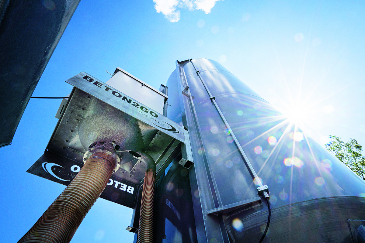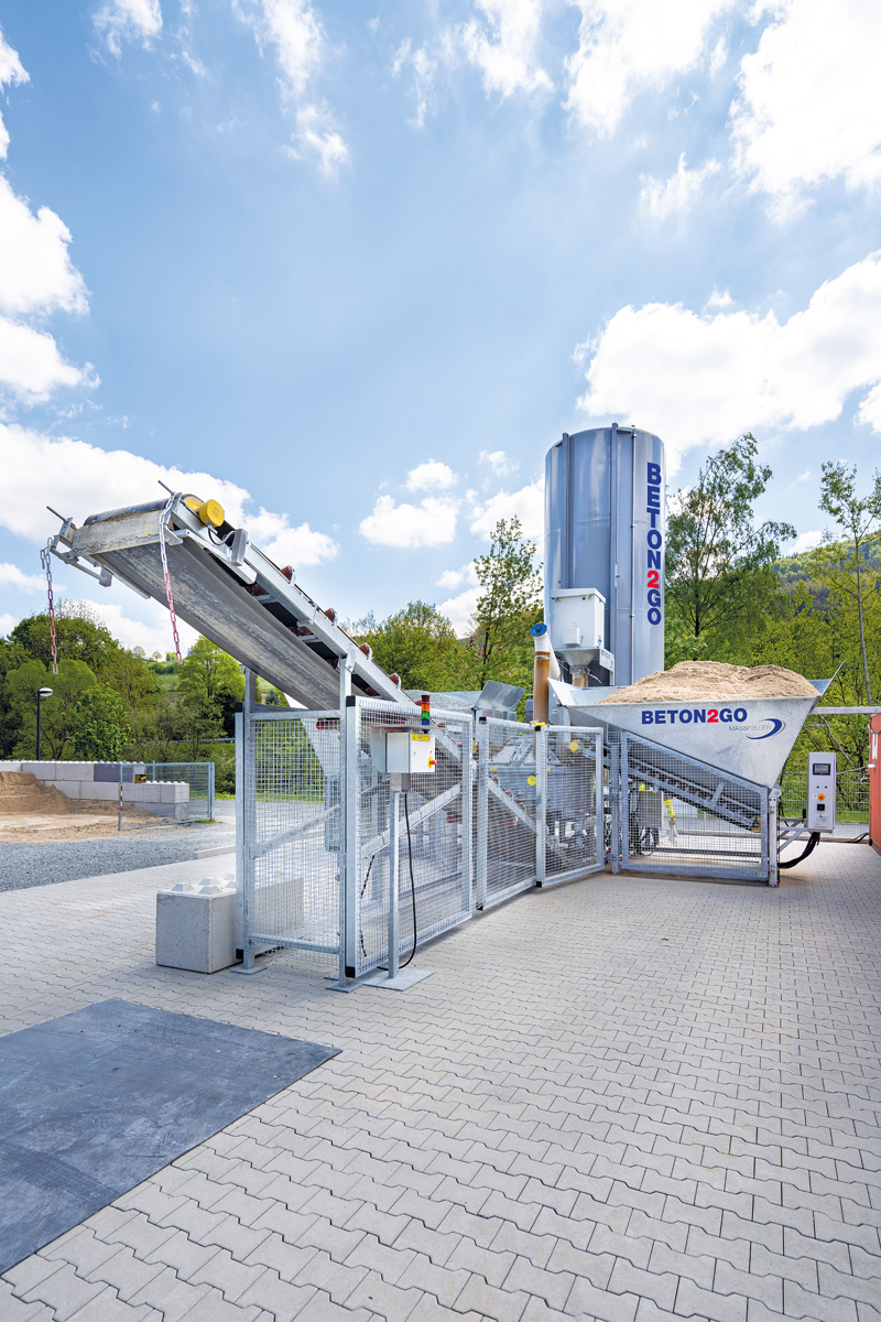 Die Betontankstelle des Herstellers aus dem Westerwald zeichnet sich nach eigenen Angaben insbesondere durch ein einzigartiges Trockenreinigungssystem aus, das durch den Einsatz eines Planetenmischers möglich wird: Die Anlage wird mit Kies ohne Zugabe von Wasser gereinigt, wobei der Kies den Restbeton bindet. Diese Mischung wird über das Förderband ausgebracht und kann vollständig wiederverwendet werden. Dieses Kreislaufsystem verspricht eine Einsparung von 100 % der Entsorgungskosten einer Zementschlämme und schont damit die Umwelt. »Die Reinigung unserer Betontankstelle ist eine saubere Sache. Bei Anlagen anderer Hersteller gehen damit allein monatliche Entsorgungskosten von 200 Euro und mehr einher«, erklärt Lukas Massfeller.