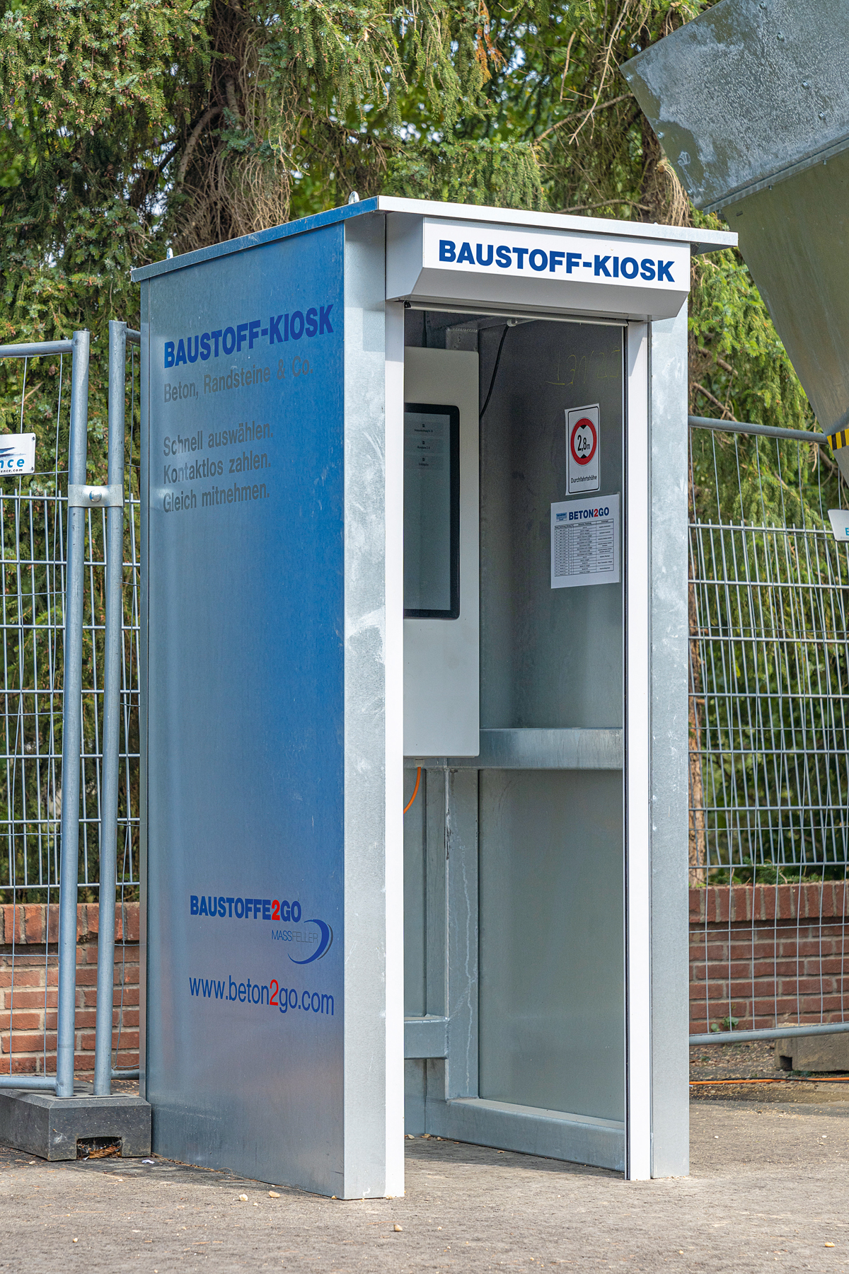 Zudem entlasten die Betreiber der Anlagen ihr Personal. Beton, Rollrasen oder Bordsteine werden individuell im System angelegt und über den BaustoffKiosk verkauft. Der Kunde bestellt kontaktlos, die Bezahlung erfolgt digital. Gesteuert werden die Beton2Go-Anlagen über eine Magnetkarte oder einen QR-Code, die der Kunde nach der Bestellung der gewünschten Produkte beim jeweiligen Händler erhält. Der Kunde fährt dann zur Anlage auf dem Gelände, liest die Karte oder den QR-Code ein und entnimmt die bestellten Waren. »Das Konzept des kontaktlosen Verkaufs von Baustoffen kommt insbesondere bei Baustoffhändlern und Garten- und Landschaftsbauern gut an. Gerade der Schüttgutautomat ist eine Produktinnovation, die es so noch nicht gab und sich bei unseren Kunden großer Beliebtheit erfreut«, berichtet Lukas Massfeller, Beton2Go-Geschäftsführer.
