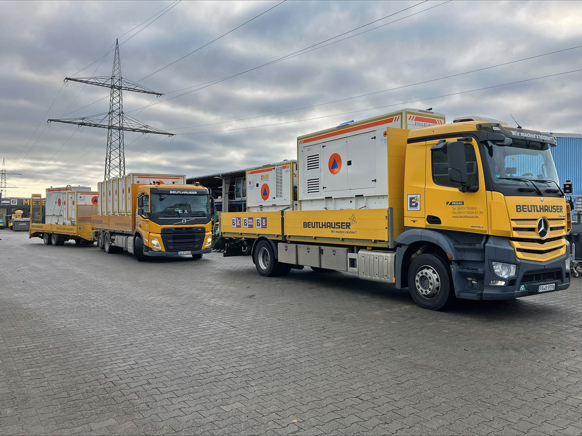 Der Arbeiter-Samariter-Bund realisiert derzeit die Beschaffung des zweiten »MBM 5000« für den Bund. Dafür werden alle benötigten Engpassressourcen vorab organisiert und eingelagert. Dazu zählen neben Zelten, Feldbetten, Küchen, Heizgeräten, Tischen, Bänken, Kühlcontainern und Toiletten u. a. auch leistungsstarke Notstromaggregate – und hier kommt Beutlhauser ins Spiel. »Wir beschäftigen uns schon seit geraumer Zeit mit dem Thema Katastrophenschutz und kennen uns deshalb auch mit dem Equipment für die komplexe Notstromversorgung sehr gut aus«, sagt das Projektteam von Beutlhauser.