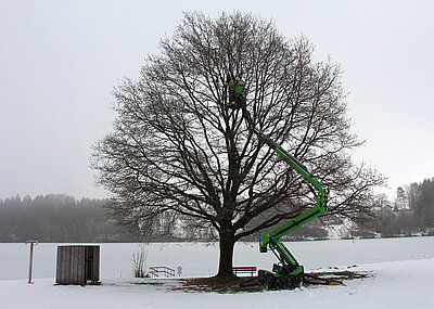 Gearbeitet wurde im Zweischichtbetrieb: Das erste Team montierte mit einem kleinen Autokran und zwei Kranmobilen das fast 6 m hohe und tonnenschwere Stahlgerüst. Gegen 12 Uhr musste die Straße für den Verkehr erstmals wieder freigegeben werden, was dem Team mit einer Punktlandung gelang. Dazu Plettl: »Um 20 Uhr durften wir die Straße erneut sperren – Startschuss für Team 2.« Unterstützung leistete diesmal ein 130 t-Autokran der Firma Meier. »Nachdem wir den Liebherr 53 K mit einem Eigengewicht von rund 12 t durch das Portal gezogen und aufgestellt hatten, kam der Autokran zum Einsatz. Der 53 K wurde mit viel Fingerspitzengefühl auf seinen erhöhten Standplatz gehoben.« Anschließend wurde er auf dem Portal verankert und fertig ballastiert. Zuletzt wurde der Ausleger in die Höhe gezogen und richtig eingestellt.