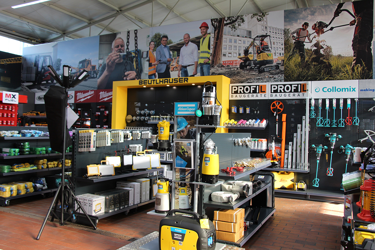 „Der Shop ist ein Paradebeispiel für das Beutlhauser-Prinzip ‚Alles aus einer Hand‘. Hier erhalten Kunden sämtliche Produkte, die im täglichen Einsatz bei Bauprojekten benötigt werden – von der Glühbirne über den Rasenmäher bis hin zu Bauspezialartikeln. Zudem befindet sich in Kulmbach der Hauptstandort für das Baustellenmanagement. Ausstellungscontainer können hier immer besichtigt werden. Darüber hinaus bleibt das bisherige Angebot der Kommunaltechnik bestehen, sodass sich weitere Synergien ergeben“, sagt Matthias Eberlein, Leiter Baustellenmanagement.