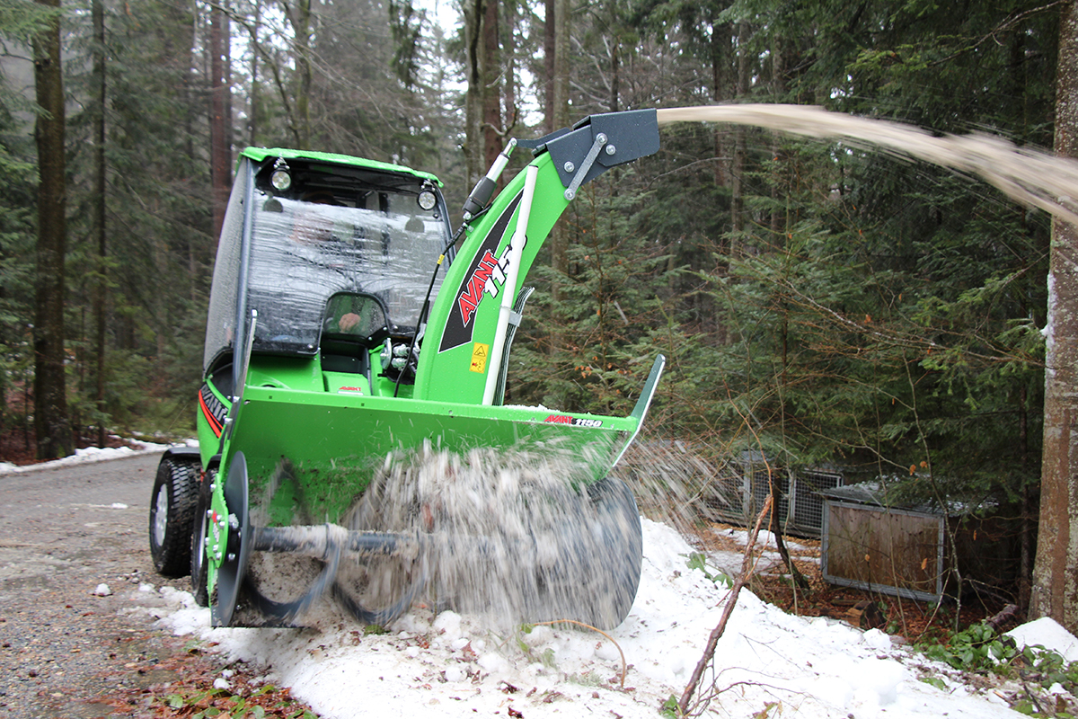 Als weitere Pluspunkte nennt Hausmeister Reinhard Peter den Komfort in der Kabine, die den Fahrer warm hält und beim Schneefräsen vor dem Schneestaub schützt, sowie die hohe Benutzerfreundlichkeit. Dank des Wechselsystems lassen sich die Anbaugeräte schnell an- und abbauen. Zum Einsatz kommen eine Standardschaufel, eine Palettengabel und die Schneefräse mit verstellbarem Kamin. Die erstmalige Zusammenarbeit mit Beutlhauser hat Peter positiv erlebt. „Wir fühlten uns sehr gut beraten. Bei Beutlhauser gibt es für jede Frage eine Antwort“, sagt er. Auch Produktmanager Christian Aulinger freut sich über die unkomplizierte Zusammen-arbeit, die eine Premiere darstellte: Der Baumwipfelpfad Bayerischer Wald ist nun der erste Baumwipfelpfad, bei dem ein Avant-Kompaktlader die Arbeit erleichtert.