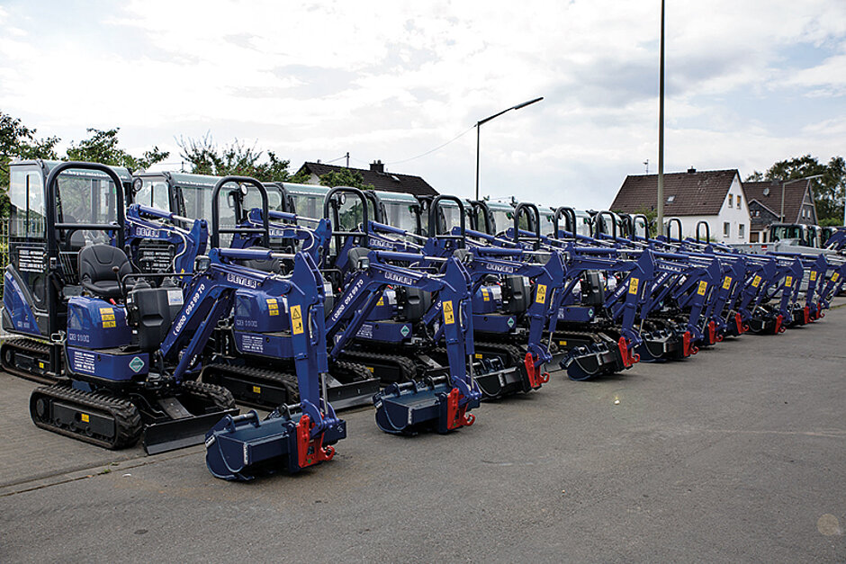 30 neue Mini- und Raupenbagger in der Klasse von 1 t bis 3 t und 20 neue Radlader sind in der Beyer-Mietflotte eingetroffen. Im Detail handelt es sich um die Hitachi-Bagger ZX 10 U-2 (bei Beyer: MB 110 K), ZX 18-U3 (MB 200) und ZX 33-U3 (RB 350 K) sowie die Kramer-Radlader RL 35 und RL 75. Bei der Übergabe an Beyer-Mietservice-Geschäftsführer Dieter Beyer unterstrich Thomas Danino als Geschäftsführer von Kiesel West die besonderen Qualitäten der Minibagger MB 110 K, MB 200 und RB 350 K: »Alle Komponenten sind auf hohe Belastungen ausgelegt und werden mit bekannt hohen japanischen Qualitätsmerkmalen hergestellt«. Für Erdbewegungsarbeiten müssten zudem die überdurchschnittlich hohen Grabkräfte und die stabile Konstruktion betont werden. Kiesel habe sich bei seinen Erdbewegungsmaschinen auch mit der dazu passenden Anbaugerätethematik aus eigenem Hause befasst und könne diese abgestimmt für jede Maschinen und jedes Einsatzgewicht anbieten: »Hier hat der Kunde die Wahl aus der ›Kiesel-Selektion‹.«