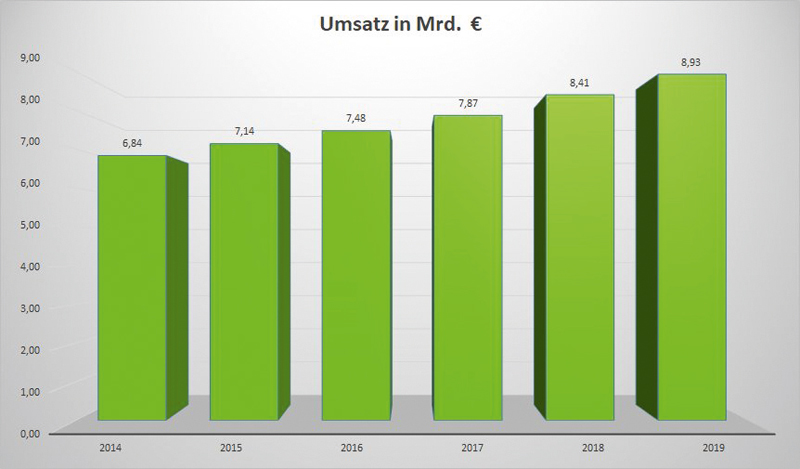 Auch 2019 ist der Privatkundenmarkt mit 57,95 % das stärkste Umsatzsegment der GaLaBau-Branche geblieben. Der Umsatz im Privatgartenmarkt stieg gegenüber dem Vorjahr um fast 6 % auf 5,18 Mrd. Euro. Ebenfalls ein Umsatzwachstum verzeichnet der Markt des öffentlichen Grüns. Hier erwirtschafteten die GaLaBau-Betriebe einen Umsatz von 1,54 Mrd. Euro gegenüber 1,43 Mrd. Euro im Jahr 2018.