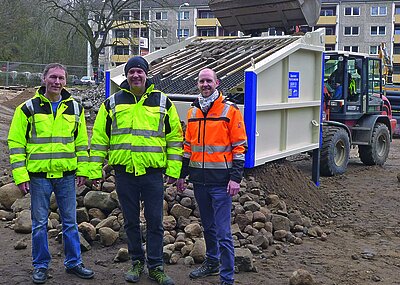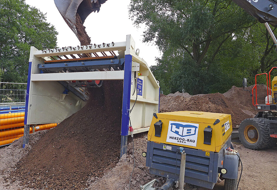 Für Oberbauleiter Ralf Muth dient die Siebmaschine in erster Linie dazu, die Kosten für Transporte, Deponierung und Baustoffe gering zu halten. »In den meisten Fällen haben wir die Möglichkeit, auf der Baustelle oder einige hundert Meter entfernt einen Platz zur Aufbereitung der Aushubmassen einzurichten, das kann je nach Baumaßnahme ein entscheidender Kostenfaktor sein«, so Muth. »Wir reden immer von Kosteneinsparung für Logistik, Deponie und Baustofflieferungen. Für die Mitarbeiter vor Ort liegt der Vorteil in der Unabhängigkeit«, ergänzt Florian Schmellenkamp, Leiter der Geschäftsentwicklung bei BHS.