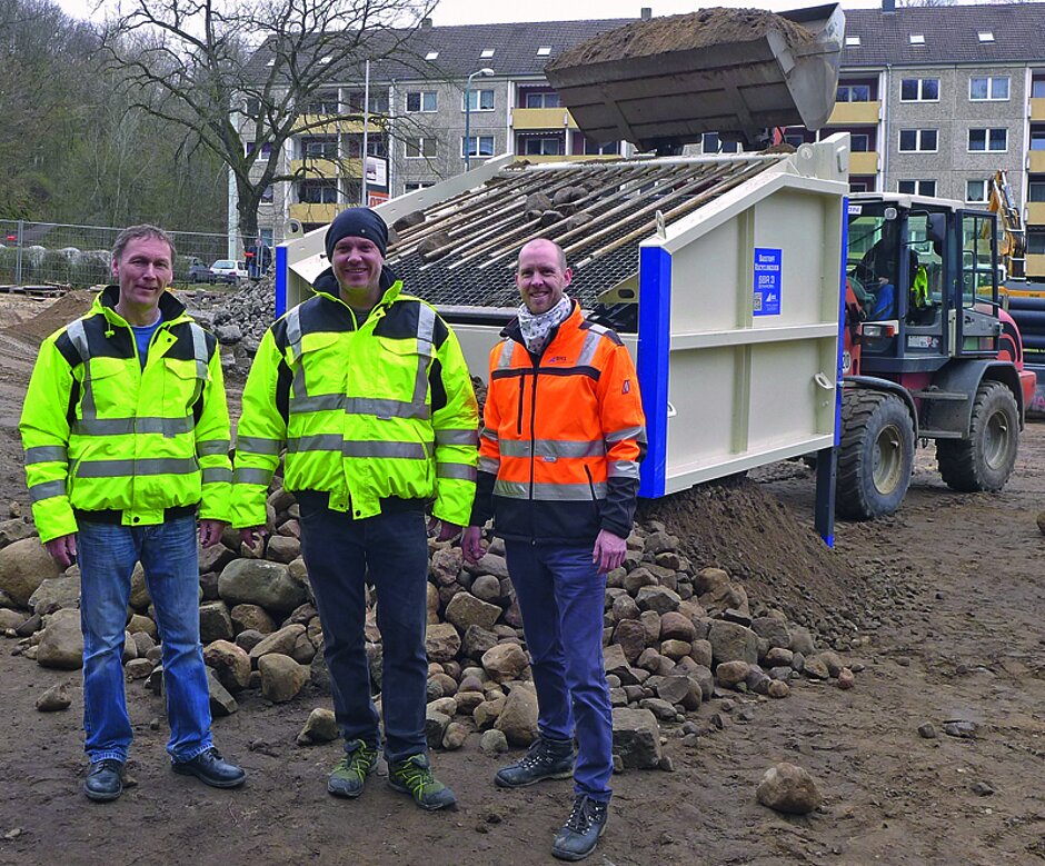 Dass die Maschine Findlinge abscheidet, war auch für Florian Schmellenkamp, dem Leiter der Geschäftsentwicklung bei BHS, nicht ganz sicher. »Mit der großen SBR 2 haben wir schon jede Größe von Gestein abgesiebt, insbesondere aus Gewichtsgründen setzen wir bei der SBR 3 jedoch dünnere Sizer-Stangen ein. Zu Beginn der Inbetriebnahme haben wir noch verschiedene Steckvarianten getestet, um nichts zu riskieren. Nach rund vier Wochen im Baustellenbetrieb ist klar, dass auch die großen Findlinge problemlos abgeschieden werden, ohne bleibende Verformungen zu verursachen«, so Schmellenkamp. t