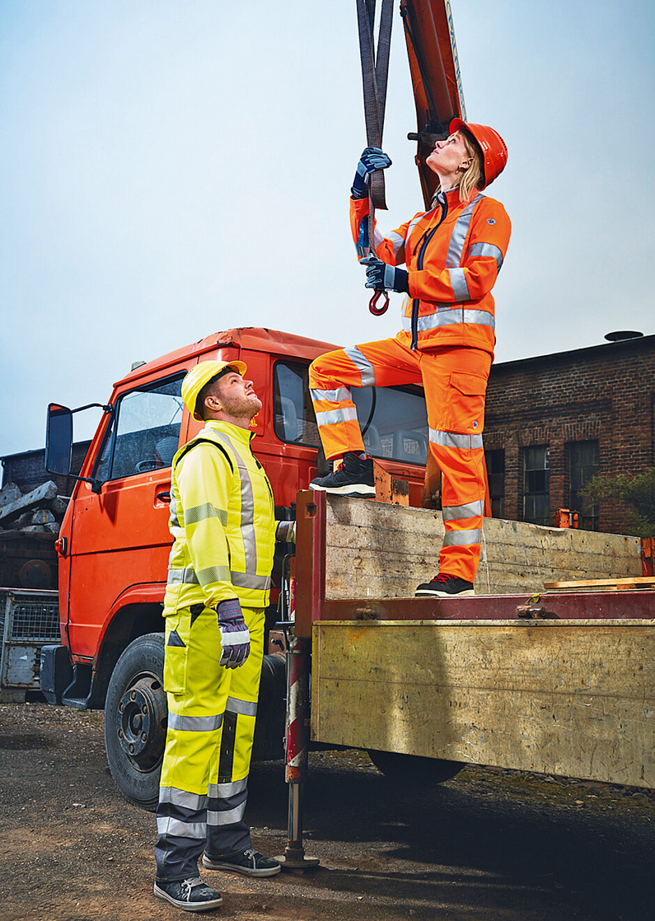 Schutz der höchsten Klasse bieten die Produkte auch beim Warnschutz nach EN ISO 20471: Sowohl die Hose und Arbeitsjacke als auch die Kombination von T-Shirt und Short erreichen die höchste Schutzklasse »3«. Hier BP auf das Prinzip der »Body Language«, bei dem das reflektierende Material so angebracht ist, dass es die Körpersilhouette des Trägers abbildet, damit bei Dunkelheit eine Rundumsichtbarkeit erreicht wird.