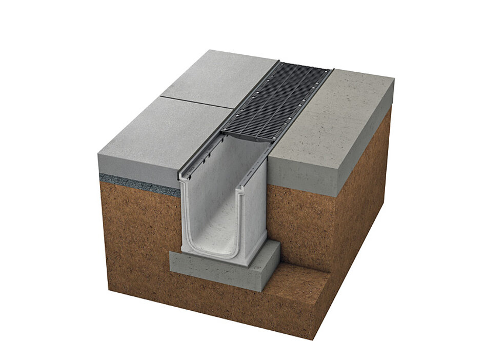 Die verschiedenen Rinnenausführungen stehen für hohe Planungsfreiheit bei Entwässerungsprojekten. Zudem hält das System dank des maximalen Rückhalteraums nahe der Oberfläche und der hohen Stabilität vielfältigen Anforderungen stand, ob im Städtebau oder im Logistikumfeld. Als Highlight der Bircomax-i unterstreicht der Anbieter die außergewöhnliche Maximalgröße. In der Nennweite 520 verfügt sie über eine Bauhöhe von 1,2 m und hat ein Fassungsvermögen von rund 512 l pro Laufmeter. Die Gusszarge der Retentionsrinne mit 5 mm Materialstärke und KTL-Beschichtung ist tief im Beton der Flanken verankert. Die Form der Zarge schützt den Rinnenkörper aus stahlbewehrtem Beton der hohen Güte C 60/75.