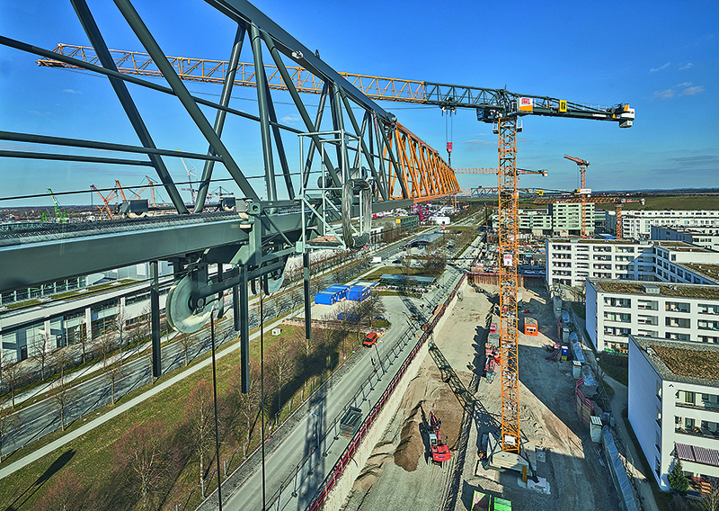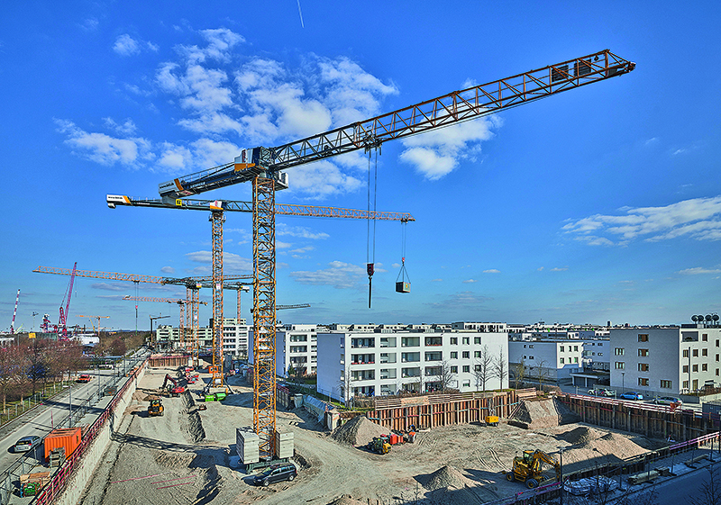 Den 340 EC-B 12 montierte das BKL-Team im März mit einer Hakenhöhe von 34 m und 50 m Ausladung auf ein Fundamentkreuz von 4,5 m x 4,5 m. Der Kran hebt bei 50 Metern an der Spitze noch über 7 t. Die Montage verlief reibungslos und dank optimierter Bolzenverbindungen einfacher und sicherer. Insbesondere die neuen LiConnect-Auslegerverbindungen an die Drehbühne ermöglichten den Monteuren, den Kran schnell fertig zu stellen und an den Kunden zu übergeben. Noch vor Beginn der Bauma folgten die beiden 340 EC-B 16 mit 44 m bzw. 34 m Hakenhöhe und 50 m bzw. 34,7 m Ausladung. Die drei Krane werden voraussichtlich bis Ende des Jahres dort im Einsatz sein.