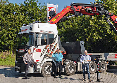 Um die Schlossbesucher möglichst wenig zu stören, war eine enge Zusammenarbeit zwischen Montage-, Autokran- und Lkw-Disposition notwendig. Das eingespielte BKL-Team schaffte die Demontage und den gesamten Abtransport der Krane an einem Tag. t