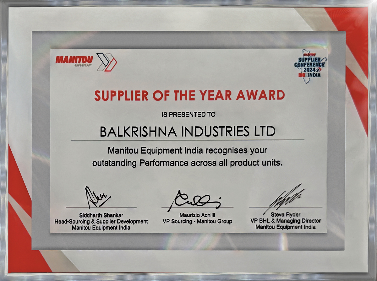 Anlässlich der Manitou Group Supplier Conference 2024 hob Steve Ryder, VP BHL & MD von Manitou Equipment India, die Wachstumsaussichten des indischen Marktes hervor und würdigte die herausragende Leistung der breiten Produktpalette, die BKT seinen Partnern und Kunden in 160 Ländern weltweit zur Verfügung stellt. »Dieser Erfolg ist ein Beweis für das große Engagement und die harte Arbeit, die wir seit mehr als 30 Jahren leisten und die uns heute eine neue, bedeutende Auszeichnung eingebracht haben, die unser ständiges Bemühen um qualitativ hochwertige Produkte und Dienstleistungen honoriert. Von Manitou India, einem unserer wichtigsten Partner für den indischen Markt, als Lieferant des Jahres ausgezeichnet zu werden, ist für uns gleichbedeutend mit Stolz und eine starke Motivation, weiter zu wachsen – im Einklang mit dem, was wir über die Jahre hinweg getan haben«, so Arvind Poddar, Vorstandsvorsitzender und Geschäftsführer von BKT. s