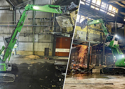 Neben der Kompaktheit der Maschine trägt das verwendete Schnellwechselsystem am Stiel zur Flexibilität am Platz bei: „Wir können dadurch auf die unterschiedlichen Materialien zügig reagieren, wenn es erforderlich ist, vom Mehrschalengreifer kurzfristig auf die Magnetplatte umzusteigen“, meint Reindel weiter.