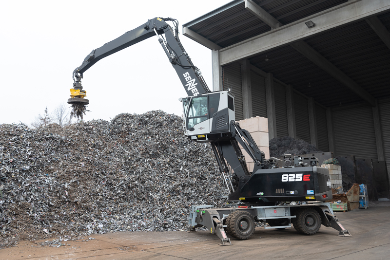 Pro Monat werden am 12.000 qm großen Platz 4.500 Tonnen unterschiedlichster Materialien an Altschrott angeliefert, umgeschlagen und recycelt. Dabei handelt es sich vorwiegend um NE-Metalle und Kabelschrott, die national sowie international weiterverarbeitet werden. „Mit den 50 unterschiedlichen Schrottsorten, die wir tagtäglich bedienen, sind entsprechende Lagerflächen nötig, die automatisch die Fahrtwege für Maschinen verkleinern. Daher brauchten wir eine sehr agile und dennoch robuste Lösung, die uns der 825 E von SENNEBOGEN anbot“, erklärt der Technische Leiter von SWRN, Robin Reindel.