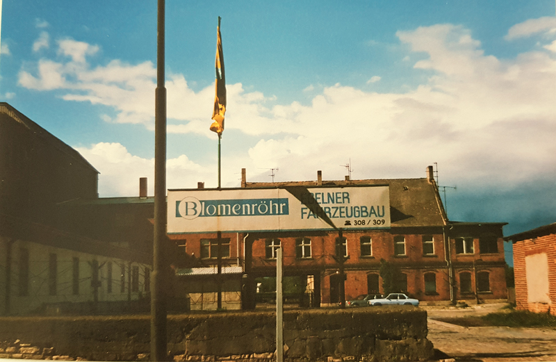 Weil Firmengründer und Inhaber Anton Blomenröhr damals häufiger privat in der DDR unterwegs war, wusste er nach dem Mauerfall, dass gerade im Bausektor ein hoher Investitionsbedarf bestand – und dass seine Anhänger für die Baubranche sehr gefragt sein werden. Er wollte seine Produktionskapazitäten über die innerdeutsche Grenze ausweiten und suchte Kontakte in der DDR. Mit der Familie fuhr er im März 1990 in einem Wohnmobil zur Leipziger Frühjahrsmesse. Am Stand des Außenhandelskontors erhielt er Adressen von Fahrzeugbauunternehmen, die grenznah gelegen waren. In Egeln wurde er fündig mit einem Fahrzeugbauunternehmen, dessen Eigentumsverhältnisse geklärt waren, und schloss im April 1990 mit diesem die erste Kooperationsvereinbarung. Bevor man in den Standort investieren wollte, musste die Firma in das Blomenröhr-Eigentum übergegangen sein – im November 1990 wurde der Kaufvertrag notariell mit der Treuhand geschlossen.