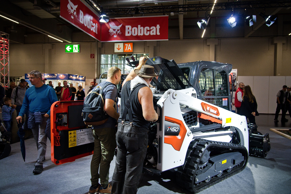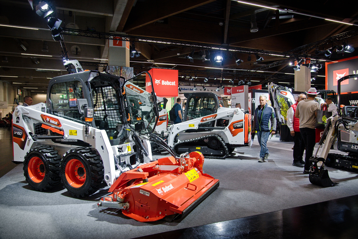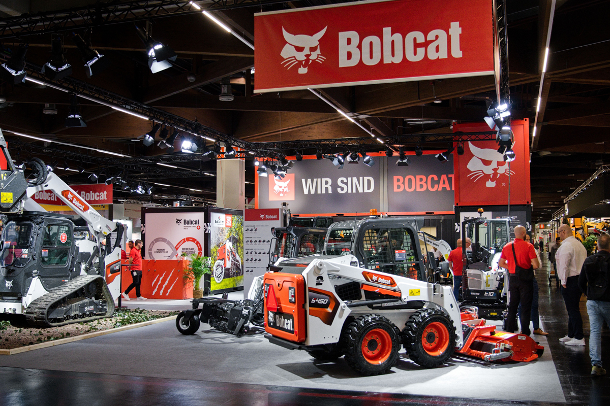 Besucher des Bobcat-Standes 332 in Halle 7 konnten Produkte aus dem Bobcat-Sortiment für die Landschaftsgestaltung und Grünflächenpflege begutachten. Dazu gehören Kompaktlader und Kompakt-Raupenlader, Minibagger, Teleskopen, Kompakt-Radlader, leichte Verdichtungsmaschinen, Generatoren und spezielle Anbaugeräte und Maschinen für die Forstwirtschaft.