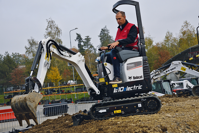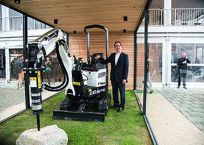 Besondere Aufmerksamkeit wurde dem laut Bobcat weltweit ersten elektrischen Minibagger im 1-t-Segment geschenkt: Der erstmals auf der Bauma im April gezeigte E10e (das bauMAGAZIN berichtete in Heft 4/19, Seite 90) verfügt über einen wartungsfreien Lithium-Ionen-Akku, der auf die kompakten Maße einer Zero-Tail-Swing-Kurzheck-Maschine (ZTS) abgestimmt ist. Laut Hersteller kann der E10e einen 8-Stunden-Einsatztag ableisten. Wird für das Laden ein externer Supercharger verwendet, lassen sich laut Bobcat 80 % der Akkukapazität in unter zwei Stunden erreichen. Der Bagger arbeitet besonders leise: Der Geräuschemissionswert des E10e liegt bei 74 dBA gegenüber dem E10, der rund 80 dBA misst. »Das ist halb so laut wie eine vergleichbare Dieselmaschine«, sagt Freddy Remory, Produkt-Manager Kompaktlader bei Bobcat. »Durch die leichte Handhabung, die geringe Geräuschentwicklung und den emissionsfreien Antrieb eignet sich der E10e zum Beispiel auch gut für Abrissarbeiten im Innenbereich, bei Kellerbauten oder genereller Nachtarbeit.«