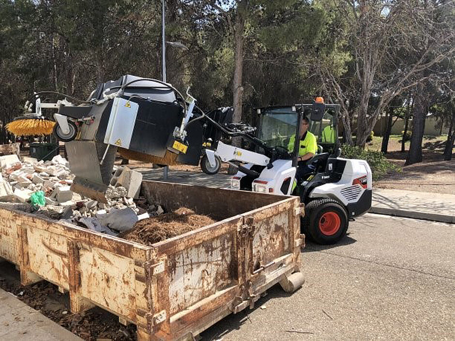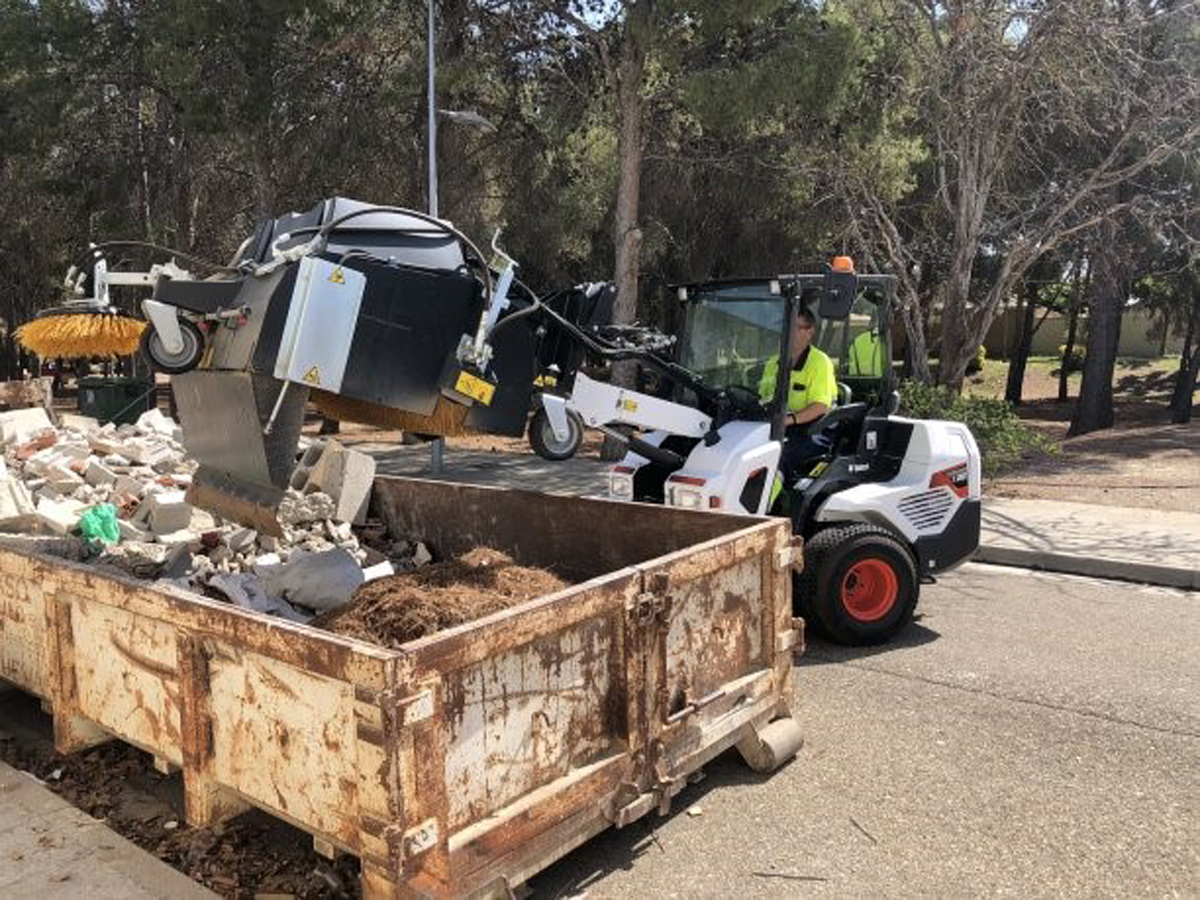 Das Modell L28 erwies sich als ideale Wahl, da das Dorf eine vielseitige Maschine benötigte, die tägliche kommunale Aufgaben wie Kehren, Unkrautjäten, Betonbrechen, Lastentransport und sogar das Mähen des Fußballplatzes bewältigen kann. Der Bobcat L28 erfüllt all diese Anforderungen dank seiner minimalen Bodenbelastung und dem speziellen Rasenschonmodus, der sicherstellt, dass die Grasflächen unbeschädigt bleiben.