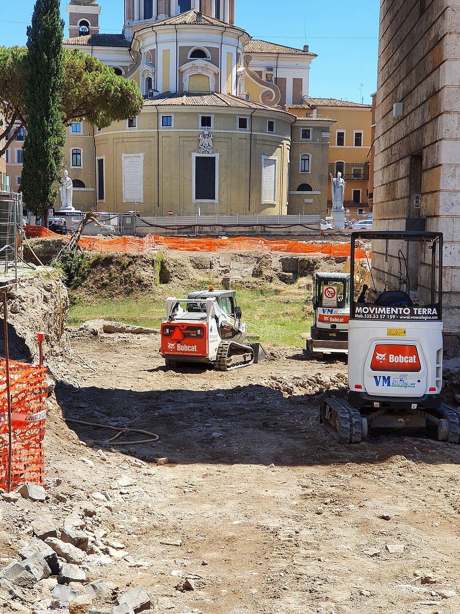 Archäologische Ausgrabungen erfordern eine vorsichtige und sehr sorgfältige Arbeit. Um effektiv arbeiten zu können, ohne die Schätze des alten Roms zu gefährden, werden dabei auch Minibagger eingesetzt. Bevor mit den Ausgrabungsarbeiten begonnen wird, werden Untersuchungen von leitenden Archäologen durchgeführt. Der erste Teil der Ausgrabung könne recht schnell durchgeführt werden, sobald jedoch eine bestimmte Tiefe erreicht ist, müsse man äußerst präzise, geschickt und gewissenhaft vorgehen. Es sei eine langwierige und präzise Arbeit, bei der jeder Bagger ständig von einem Archäologen bemannt wird, um jeden Stein und jedes ausgegrabene Fragment zu untersuchen.