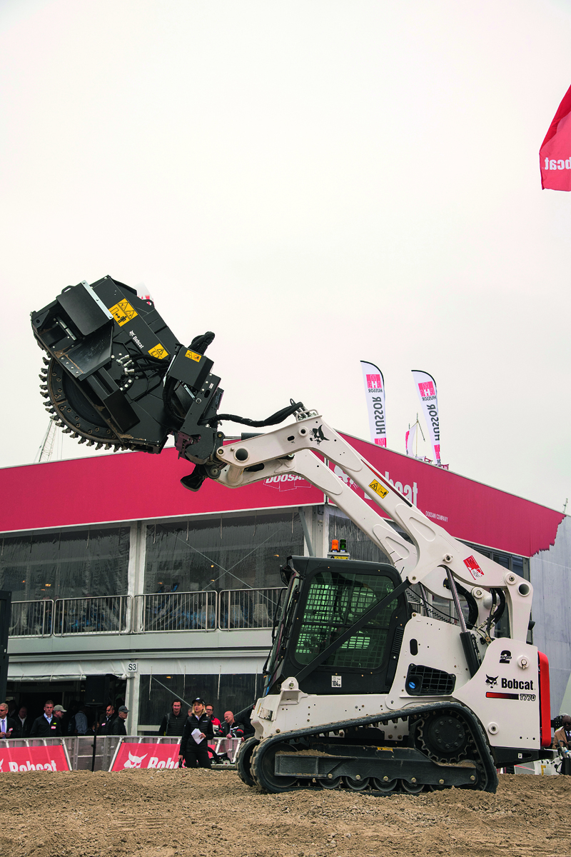 Im Segment der Materialumschlagmaschinen stellte Bobcat den erstmals mit »Waste Expert«-Paket ausgestatteten neuen Teleskoplader TL43.80HF vor. Mit einer Hubkraft von 4,3 t und einer maximalen Hubhöhe von fast 8 m ist er für Schwereinsätze konzipiert. Verstärkte Achsen, ein zusätzliches Gegengewicht und die Z-Kinematik ermöglichen laut Bobcat einen außergewöhnlichen Bewegungsradius und besondere Ausbrechkraft, »kombiniert mit den schnellsten auf dem Markt verfügbaren Auslegerbewegungen«.