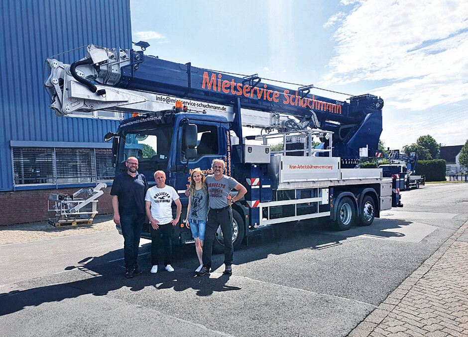 Als Dachdecker kennt Wilko Schuchmann die Anforderungen seiner Kunden an den Kran genau, sodass die Kranvermietung und der Kranverkauf mit den Böcker-Geräten in den letzten Jahren stetig ausgebaut wurde. Mit dem AK 52 als 26 t, aufgebaut auf einem MAN-3-Achsen-Lkw, wurde nach vier Anhängerkranmodellen des Typs AHK 30 KS bereits der fünfte Kran in diesem Jahr übernommen und ergänzt zwei weitere AHK 30 KS sowie einen AHK 36 sowie die Autokrane AK 35/3000 und AK 44/4000 des Fuhrparks optimal. Um der stetig wachsenden Nachfrage gerecht zu werden, hat Schuchmann für 2021 bereits zehn und für 2022 zwölf neue Böcker-Krane bestellt.