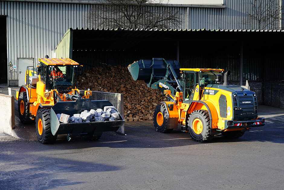 Die resistente Karkasse und der Flankenschutz präparieren den Reifen laut Bohnenkamp ideal für den Einsatz unter anspruchsvollen Arbeitsbedingungen. Der »SR 50« wurde mit einer speziellen schnittfesten Gummimischung hergestellt, die laut Hersteller »hervorragende Verschleißfestigkeit bietet«. Die Maschinenführer, so das Unternehmen weiter, werden die gute Traktion, Stabilität und den Fahrkomfort zu schätzen wissen. Im Januar wurden beide Lader übergeben. Mit 2,9 und 3,9 m³ Schaufelvolumen sind die Radlader ideal auf die hohen Schüttgewichte bei diesem Betreiber angepasst. 1 800 Stunden/Jahr leisten die beiden gelben Brummer im Westerwald, nach vier Jahren werden sie getauscht. Die neuen Radlader in Weitefeld sind mit »SR 51«-Reifen des Typs 25,5 R 25 bzw. 20.5 R 25 ausgerüstet.d